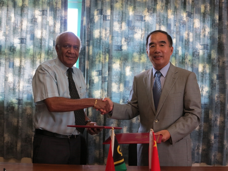 驻瓦努阿图大使谢波华与瓦努阿图总理基尔曼签署新的经济技术合作协定