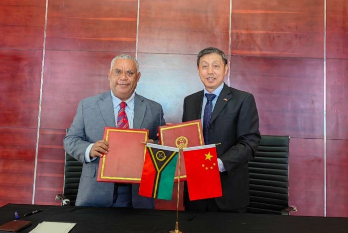 2026年1月7日,驻瓦努阿图大使李名刚和瓦努阿图总理纳帕特共同签署援瓦努阿图维拉港道路升级改造项目政府间立项换文。